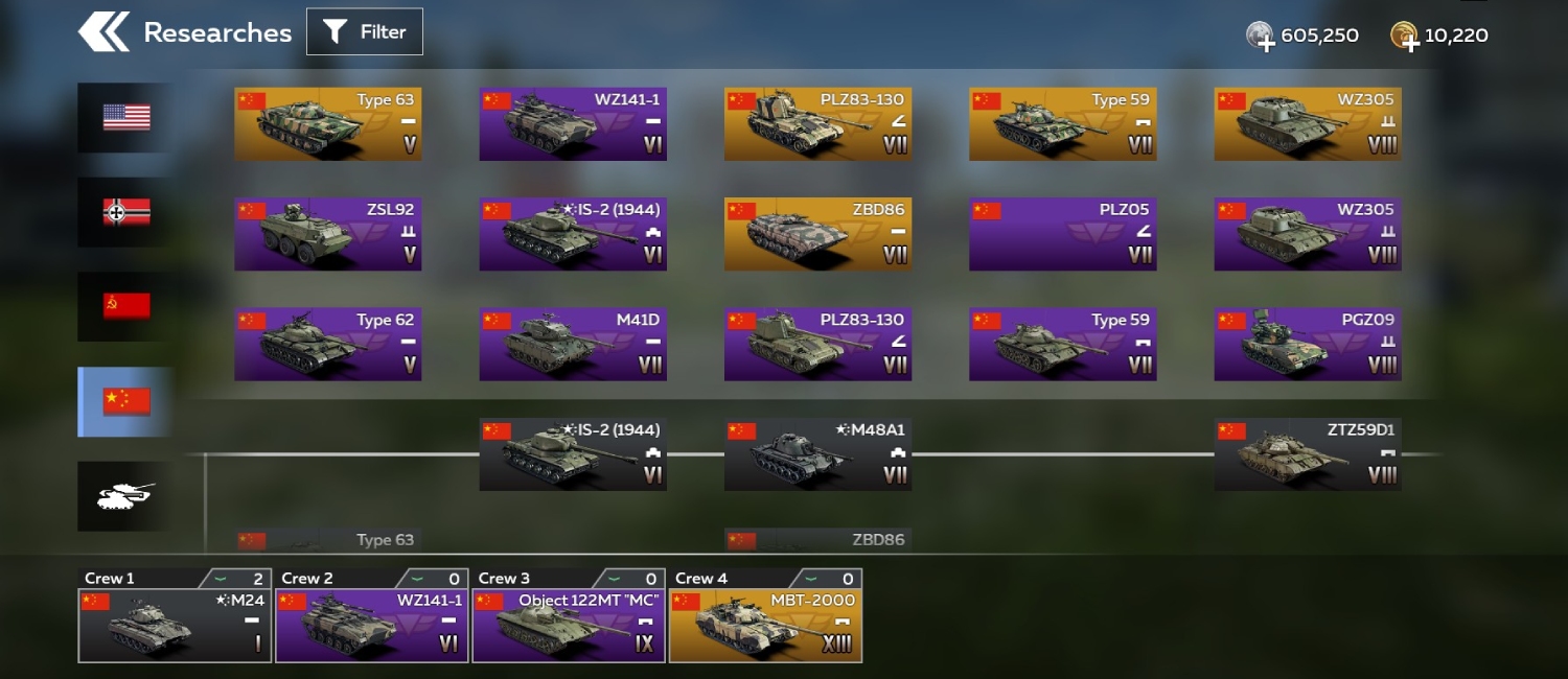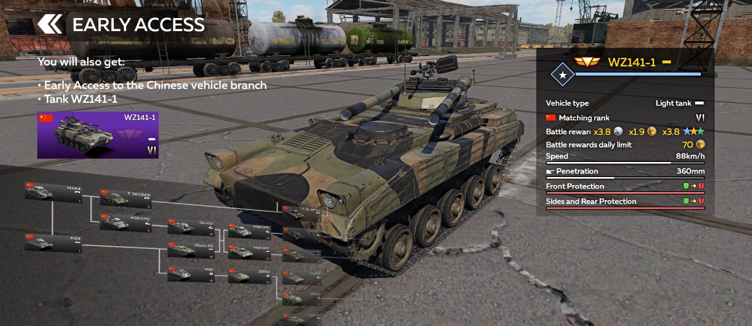 *The final tech tree interface and vehicle lineup may differ from those shown in Early Access. All Chinese vehicles that you have already researched, purchased, or obtained through trophies or other means will be transferred to the Chinese tree and remain usable even without the Early Access pack. However, progressing through and researching the new tree will only be possible if you have purchased the “Early Access” set.