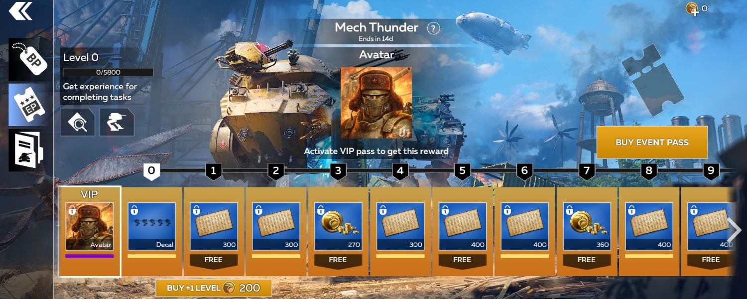 Purchasing the VIP Pass immediately gives you unique rewards: the exclusive "Mech Warrior" avatar, as well as 7 steps of pass progress.
