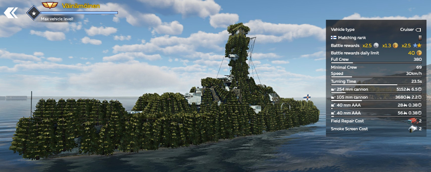 A piece of northern exoticism in War Thunder Mobile – the Finnish coastal battleship Väinämöinen, named after the main character of the Kalevala epic. It was the world's first warship with a diesel-electric propulsion system and was designed to patrol the complex coastal terrain of the Baltic Sea. The ship survived World War II without serious damage, though it was subjected to several massive air raids.