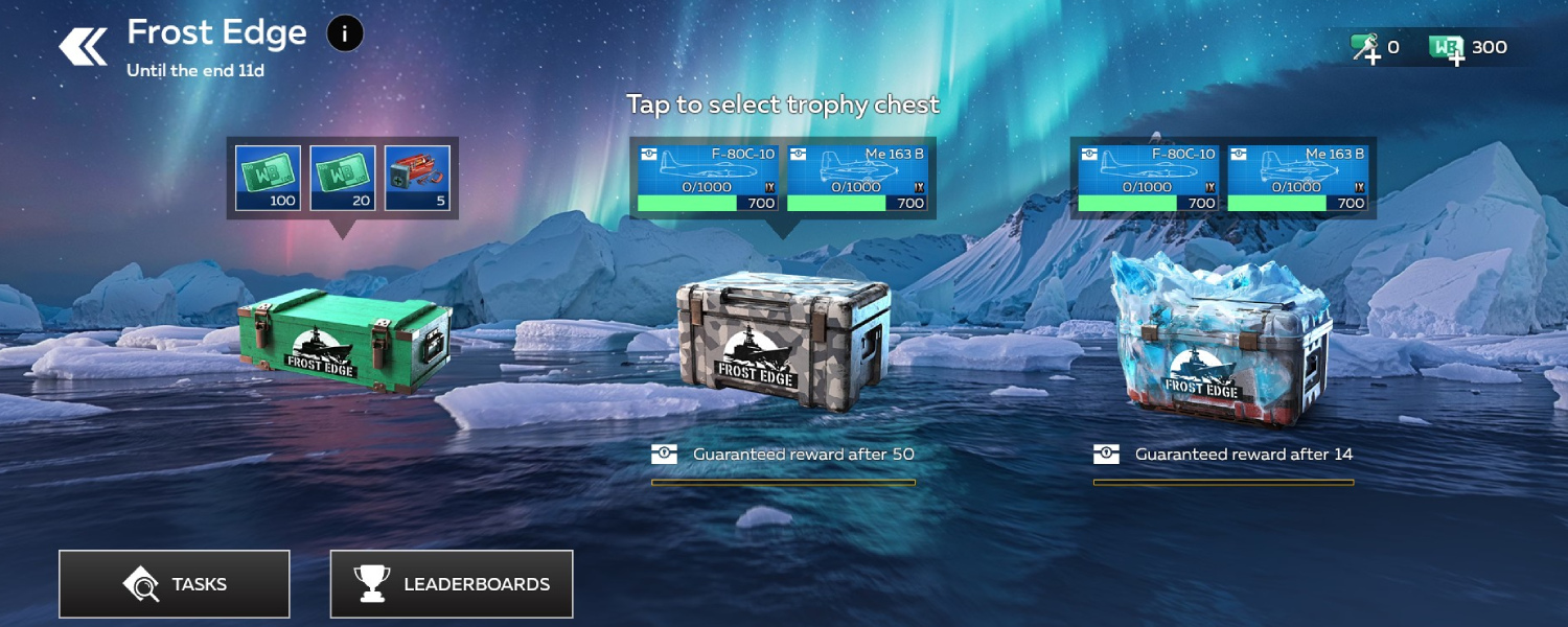 Complete the Frost Edge Season combat missions, earn War Bonds and Keys as rewards and unlock trophy containers with valuable prizes for them.