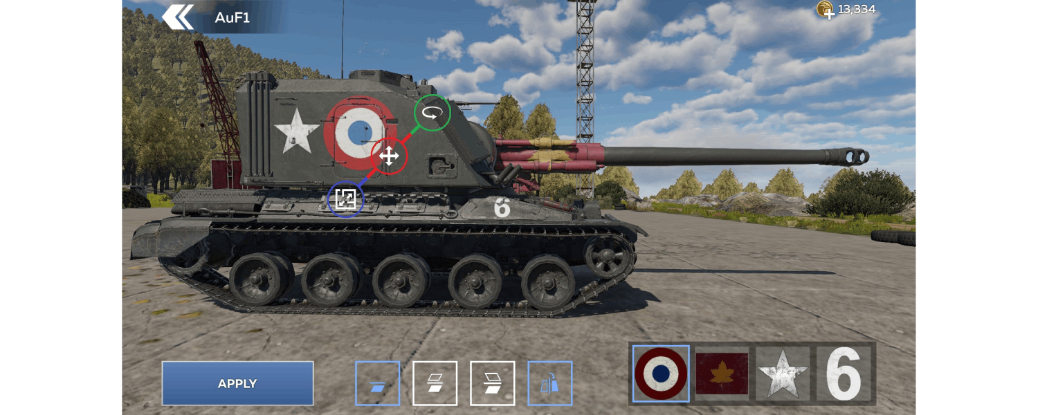 Um ein Abzeichen anzubringen, wählt einfach ein verfügbares Design aus und klickt auf den Button „Anbringen” in einem leeren Slot rechts unter der Liste. Danach öffnet sich das Menü zum Bearbeiten des Abzeichens auf dem Fahrzeug. Ihr könnt das Bild verschieben, seine Größe ändern, drehen, spiegeln oder auf symmetrischen Bereichen des Fahrzeugs platzieren. Vergesst nicht, das Endergebnis zu speichern!