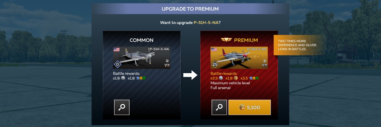 Upgrade your researched aircraft to premium versions and experience a new level of combat performance!