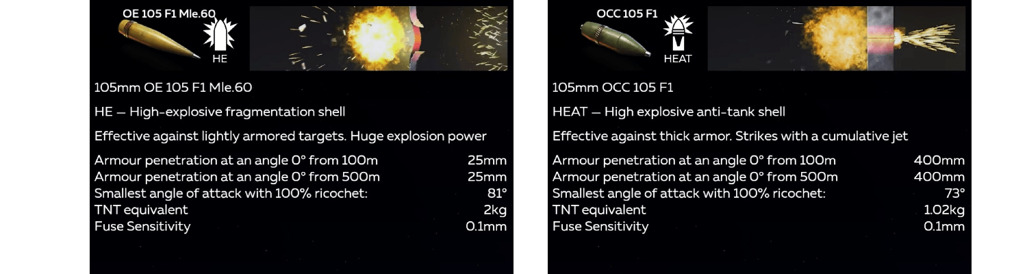 Der CLOVIS ist ein experimenteller französischer leichter Panzer, der auf dem erfolgreichen Fahrgestell des deutschen Schützenpanzers Marder basiert. Er zeichnet sich durch eine großartige Kombination aus einem oszillierenden Turm und einem automatischen Lader mit guten Kanonensenkungswinkeln aus. Künftige Kommandanten erhalten außerdem einen Autolader mit 12 Schuss in der Trommel, der alle 5 Sekunden ein neues Geschoss in den Verschluss der 105-mm-Kanone einspeist! Die Kanone verschießt zwei Arten von Granaten: HE und HEAT, letztere mit einer Durchschlagskraft von 400 mm. Der CLOVIS verfügt außerdem über eine koaxiale 20-mm- Maschinenkanone, die für die Zerstörung von leicht gepanzerten Fahrzeugen sehr praktisch ist.