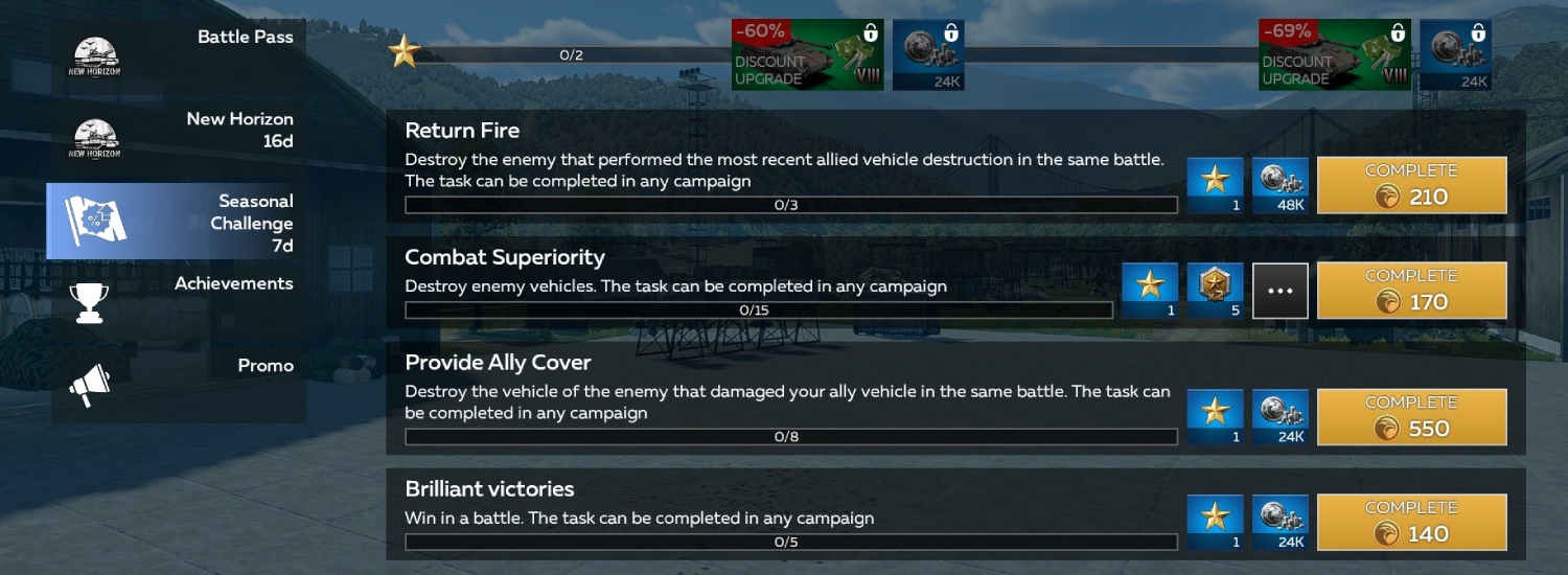 Kommandanten! 🚩 Vom 10. bis 16. Oktober 2025 (endet um 07:00 Uhr GMT) steht euch im Rahmen eines saisonalen Angebots ein neues Set einzigartiger Premium-Fahrzeuge zur Verfügung. Nachdem ihr spezielle saisonale Herausforderungen absolviert habt, könnt ihr es mit einem maximalen Rabatt kaufen: