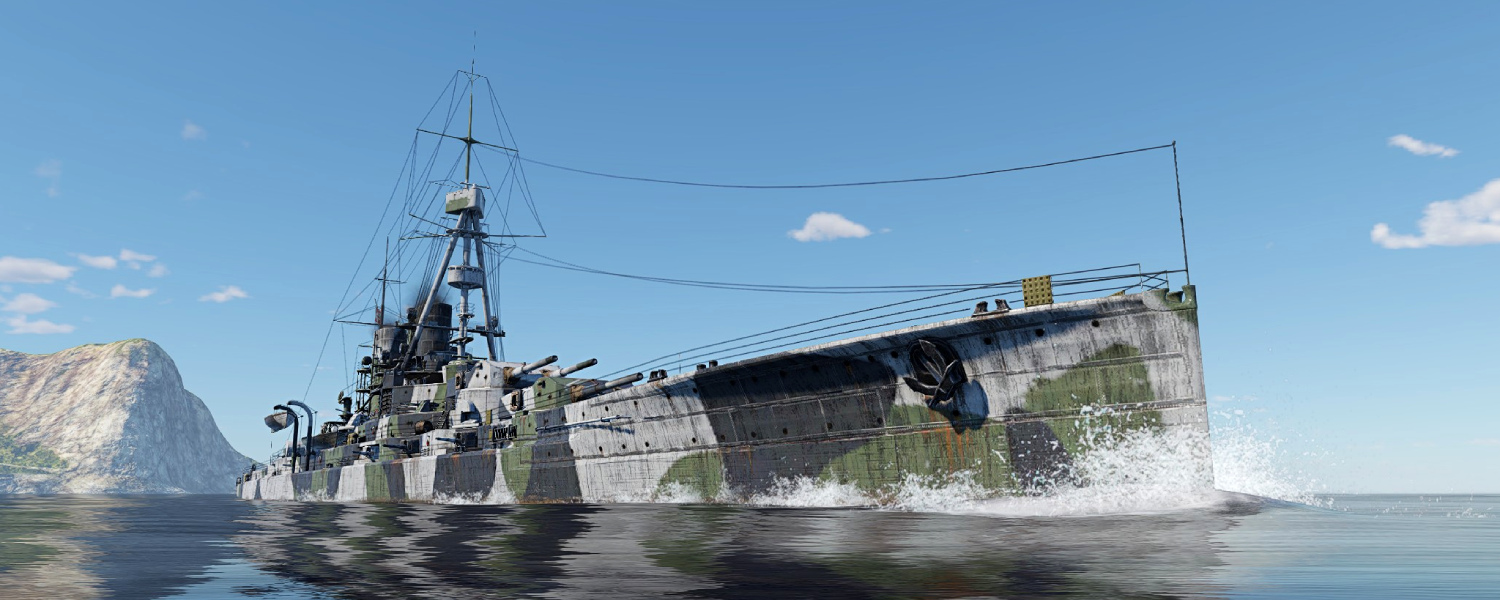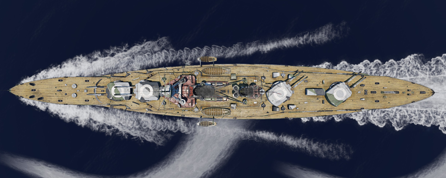 Its survivability comes from its well-designed armour and large crew, enabling it to perform reliably at medium and long ranges. Its true advantage, however, lies in its handling characteristics – in game, it is among the fastest capital ships at its rank!
