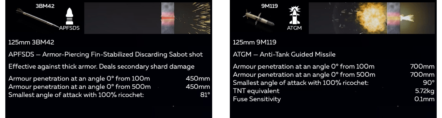 This newcomer features a complex armour layout, combining composite elements with modern fillers integrated into the steel structure. The hull and turret are further protected externally by “Kontakt-5” ERA blocks. Despite some weak zones, the tank is highly resilient in the frontal arc and can withstand hits from most types of ammunition. The sides of both the hull and turret are also strong enough to resist bursts from many automatic cannons used by light armoured vehicles.