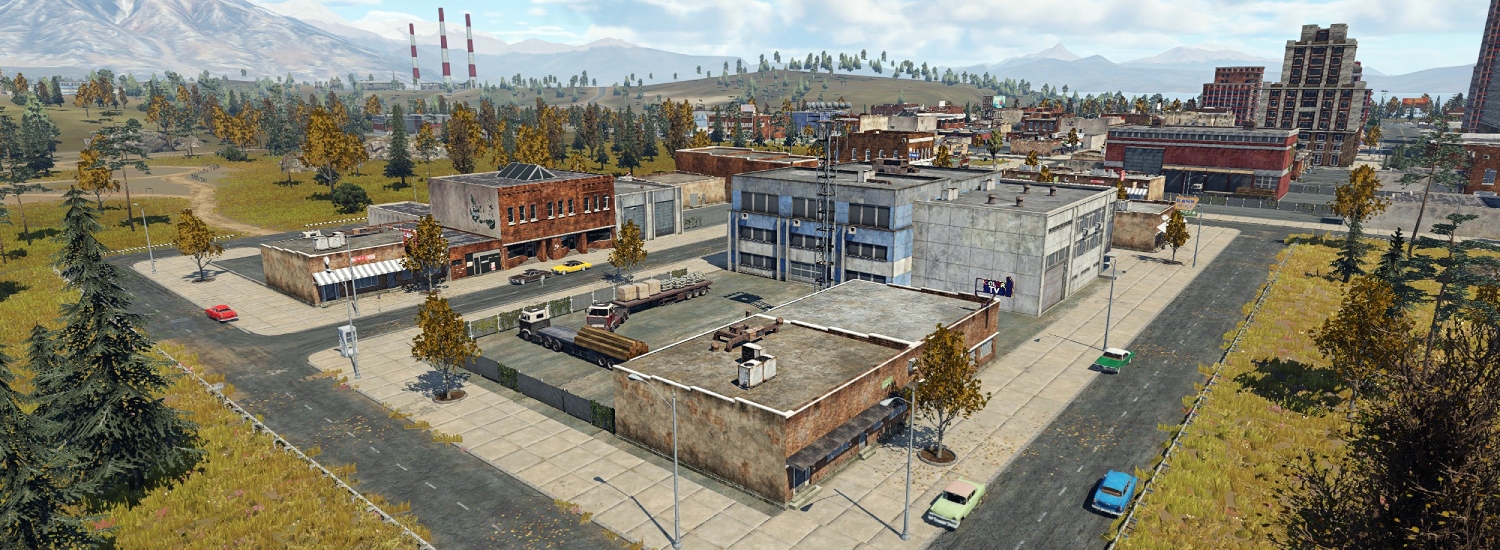 A tank map with an urban landscape and spacious outskirts for various tactics.