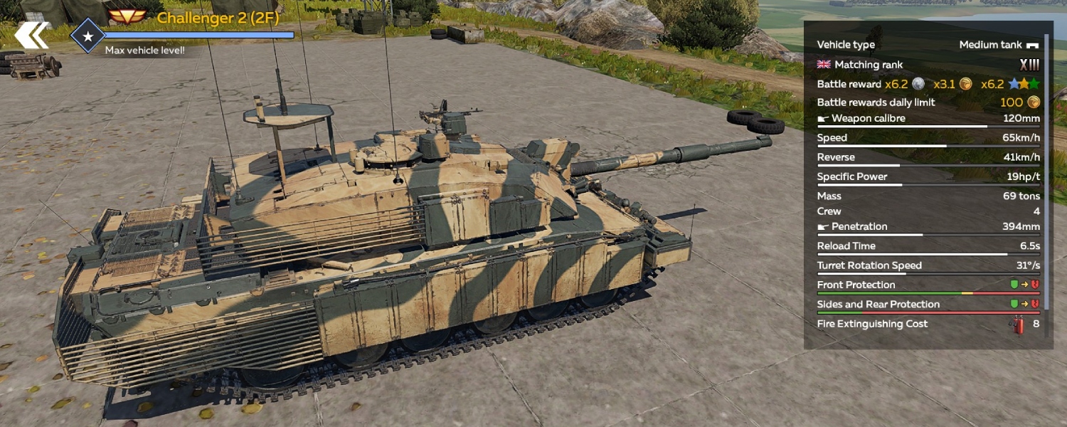 The Challenger 2, protected by its advanced Chobham composite armor, is a formidable opponent on the battlefield. When positioned behind low cover, breaching its frontal armor demands top-tier shells and precise targeting of its few weak points. The 2F variant enhances this already impressive protection. Additional Chobham armor blocks reinforce the front of the hull, while newer Dorchester armor panels have been added along the sides of the hull and turret. Slat armor now shields the rear sections, offering improved defense against man-portable anti-tank weapons. In-game, these upgrades grant the Challenger 2F increased resistance to non-tandem ATGMs and chemical energy (HEAT) rounds fired from tank cannons.