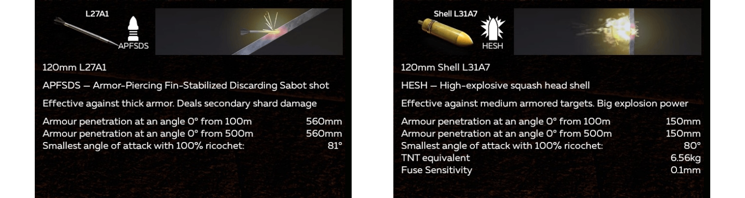 The Challenger 2’s signature 120 mm L30A1 gun is a precise, fast-firing weapon capable of firing HESH (High-Explosive Squash Head) rounds and three types of APFSDS (Armor-Piercing Fin-Stabilized Discarding Sabot) shells. Its most advanced APFSDS round can penetrate over 560 mm of armor at close range, allowing it to defeat nearly any target on the battlefield.