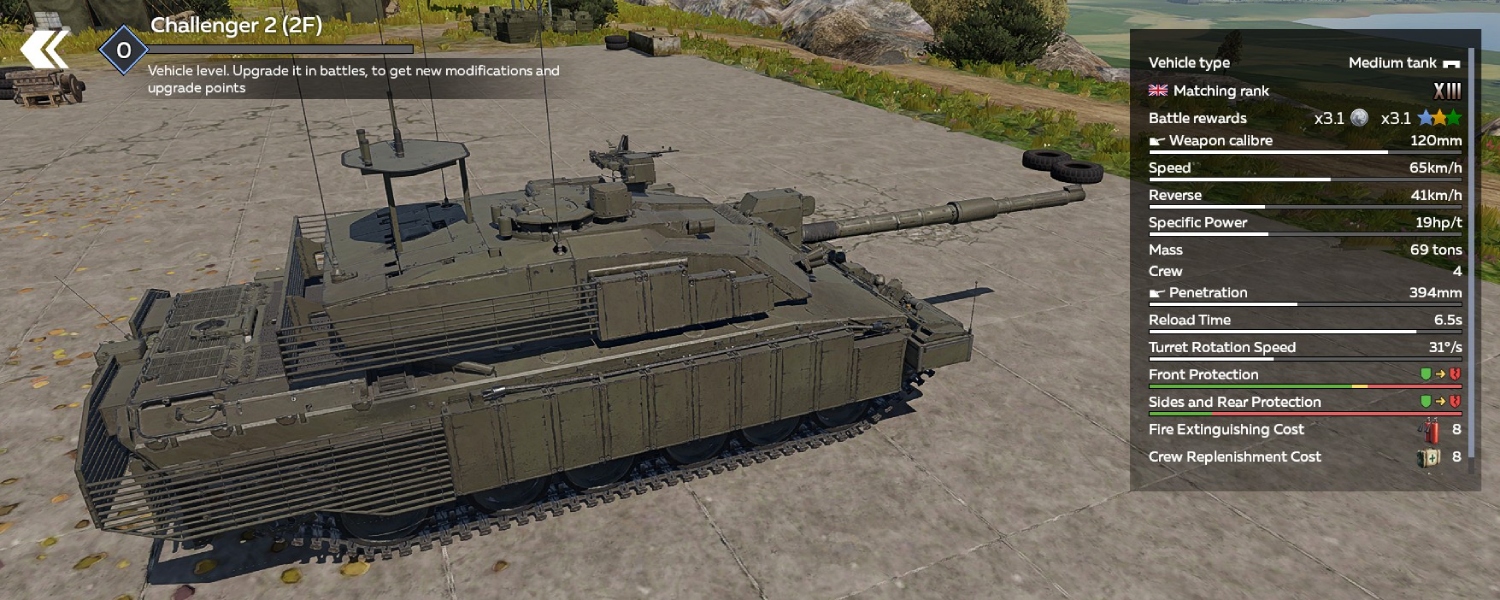 The Challenger 2 series is known for its modest mobility, and the up-armored 2F variant performs even worse in this regard. While it’s not as sluggish as mid-20th-century heavy tanks, modern MBTs will easily outpace it. Commanders should therefore avoid long crossings over open terrain, where the Challenger 2 is most vulnerable.