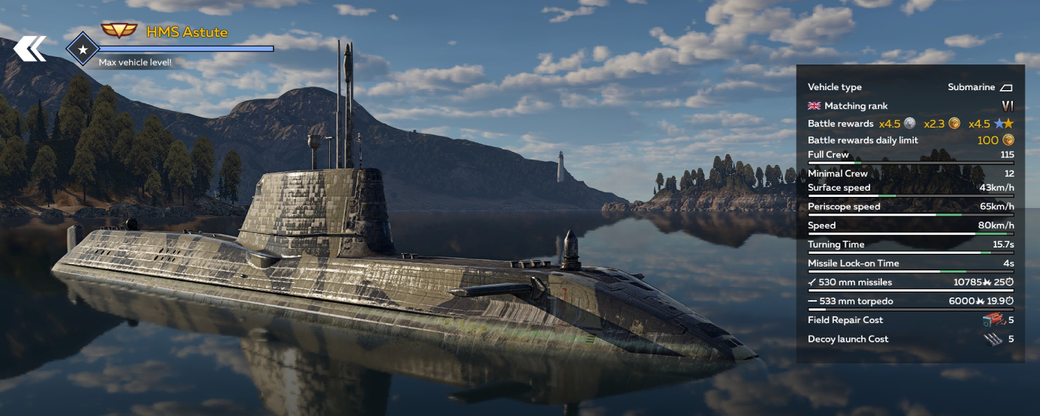The HMS Astute (Rank VI) can be obtained in War Thunder Mobile (WTM) from Medium or Big Trophies in the Ship Campaign with the start of the new Season.