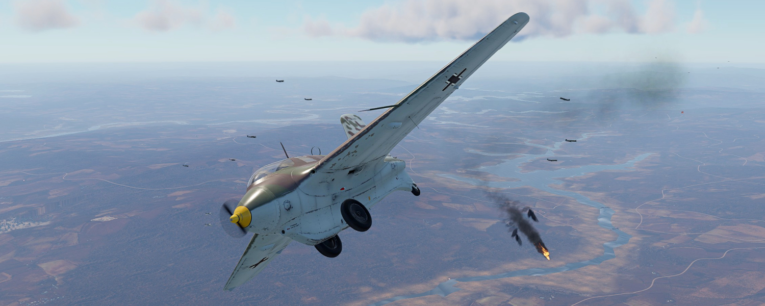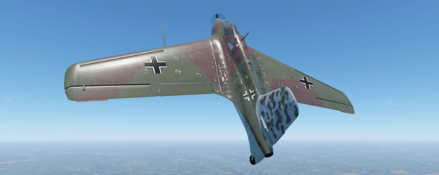 The Me 163B Komet is the first rocket-powered fighter in the game, built according to the exotic "flying wing" design. Its liquid-fuel rocket engine grants this tiny aircraft incredible acceleration, as the "Komet" boasts superior climb rate and high speed, on par with the best jet fighters in the game. The tailless design also has its quirks: on one hand, it helps the Me 163 gain altitude faster and perform sharp, energetic turns; on the other, it limits its capabilities in horizontal maneuvering, where the plane quickly bleeds off its accumulated speed.