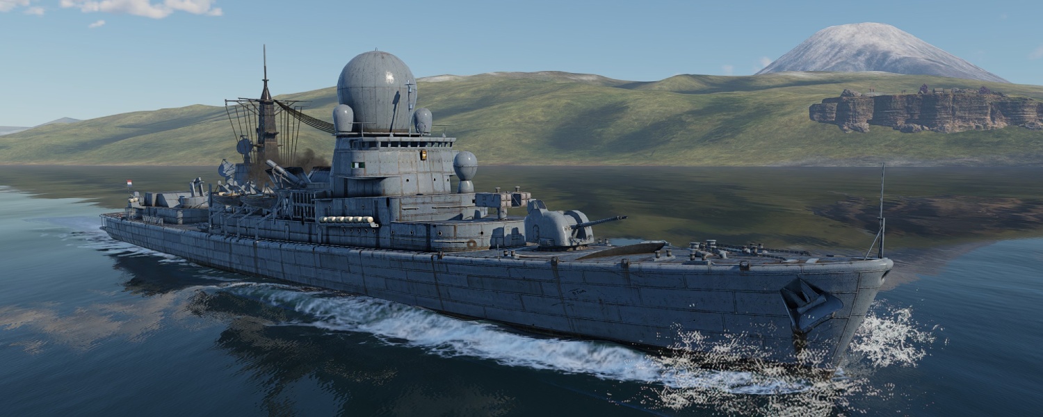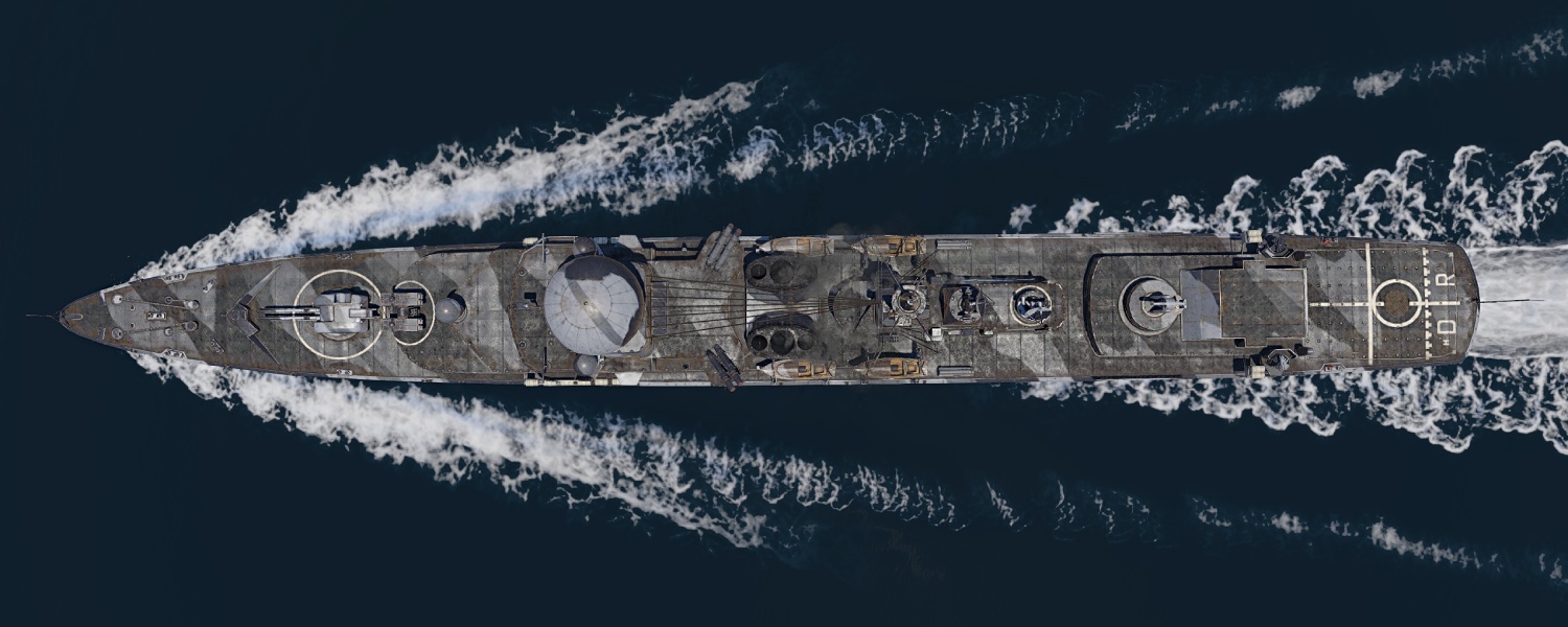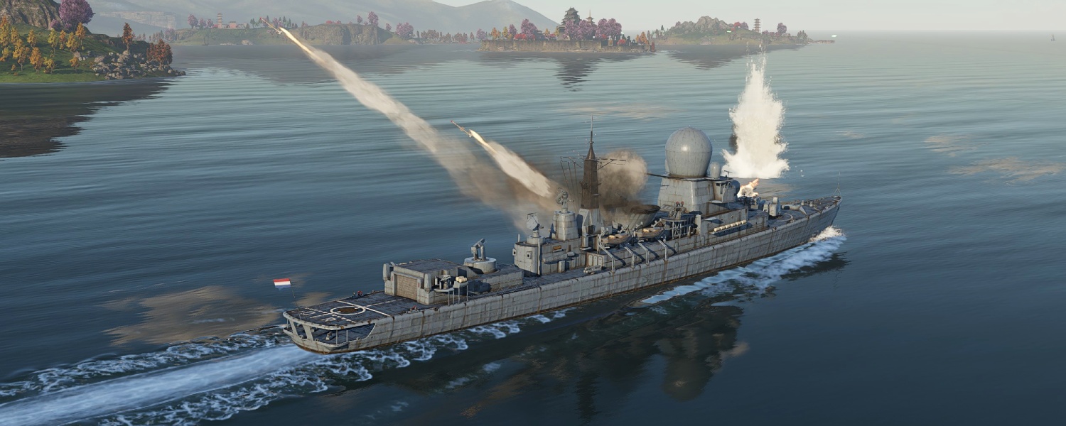 HNLMS Tromp is not the fastest ship in the game, but it has good maneuverability. This allows it to operate effectively alone, using terrain features like icebergs, rocks, and islands for cover. At the same time, the frigate will be extremely useful in the heart of a squadron, where, shielded by more durable allies, it can eliminate high-priority targets and intercept enemy missile salvos.