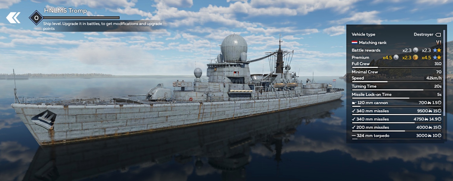 The HNLMS Tromp (Rank VI) can be obtained in War Thunder Mobile (WTM) from Medium or Big Trophies in the Ship Campaign with the start of the new Season.