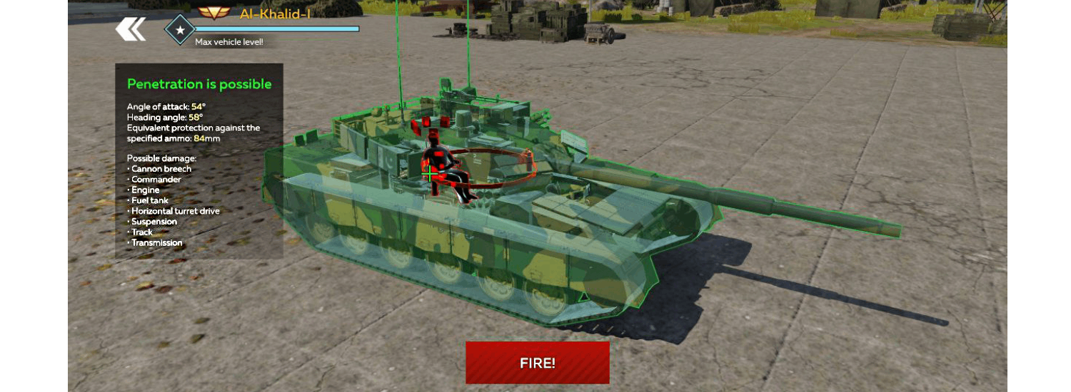Click on the vehicle in the Hangar to indicate the firing point, press the “Fire!” button and get the necessary information.