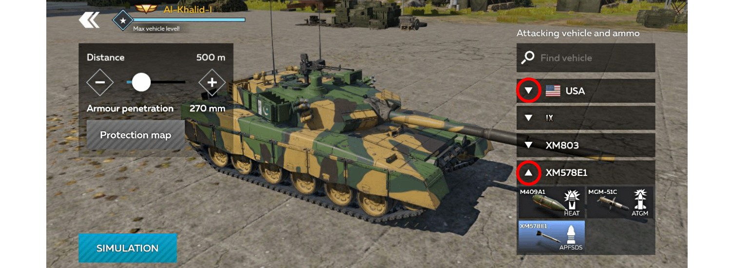 Select the vehicle that will fire at your vehicle from the list on the right (conveniently filter by rank, nation, name).
