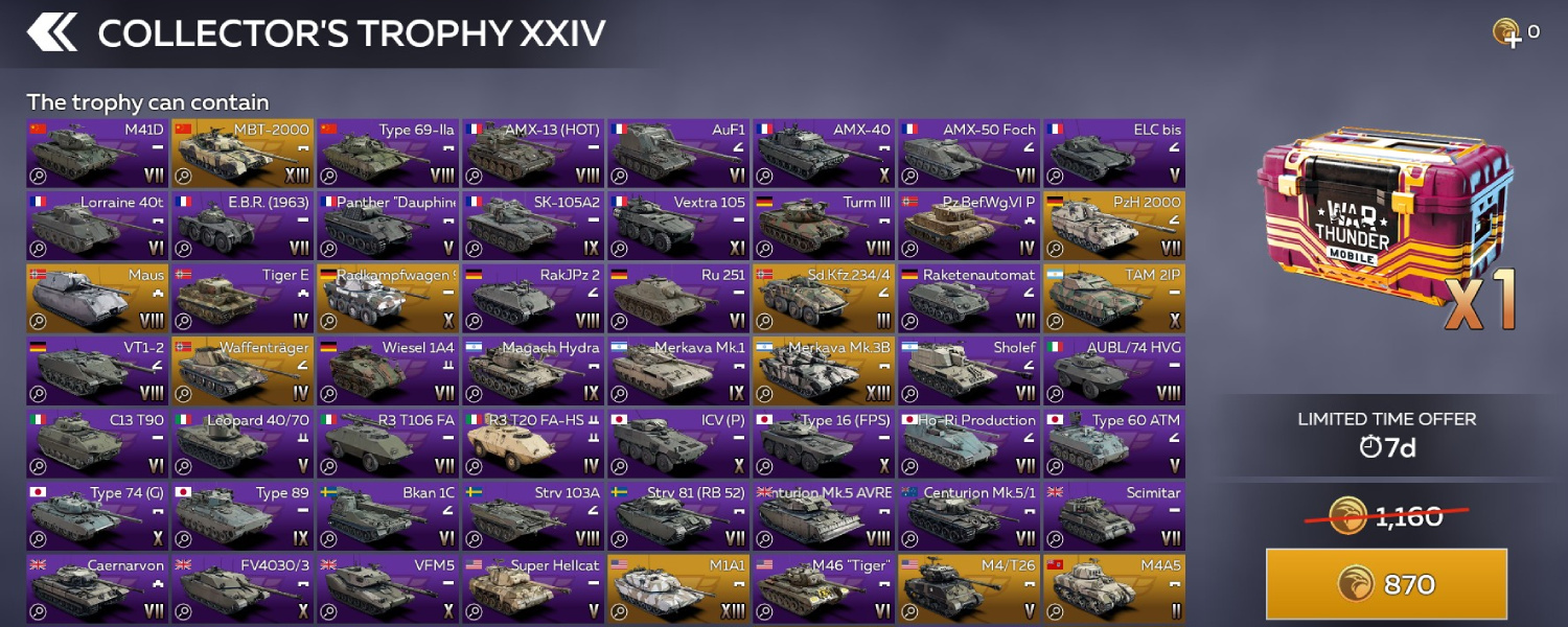 Beeilt euch, eure Hangars mit einzigartigen Fahrzeugen in luxuriösen Tarnfarben aufzufüllen – die „Sammler-Trophäen“-Aktion in WTM läuft nur 7 Tage!