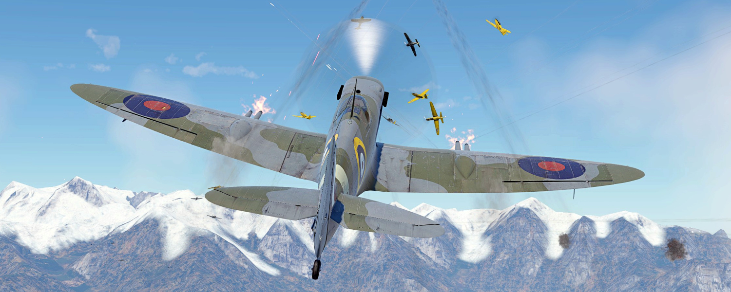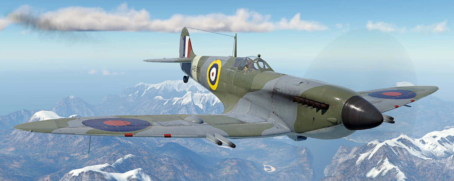 When flying the Spitfire F Mk IXc, use its excellent climb rate to gain altitude and attack the enemy from above with short bursts from the four 20 mm Hispano Mk.II cannons, then climb back to safety. It can transition into turn fighting if needed, but at low speeds and near the ground, it loses energy faster than most opponents. The suspended armament consists of 250 lb or 500 lb bombs, though their effectiveness against medium and heavy targets is limited.