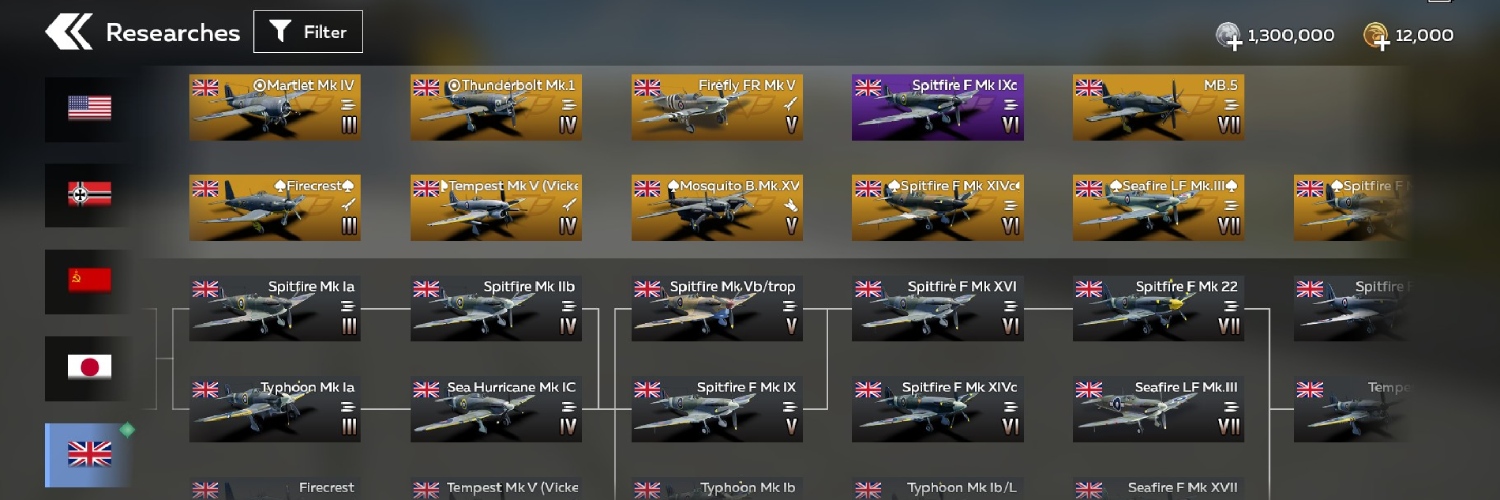 *The final branch interface and aircraft may differ from those presented in Early Access. Aircraft researched / purchased during Early Access will retain their status after the branch is opened to all players.