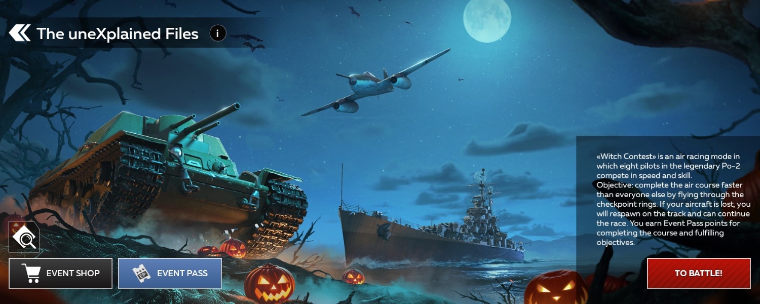 🎃 From October 28th to 09:00 (GMT) on November 4th, take part in the themed event and get a unique holiday vehicle in a spooky camouflage.