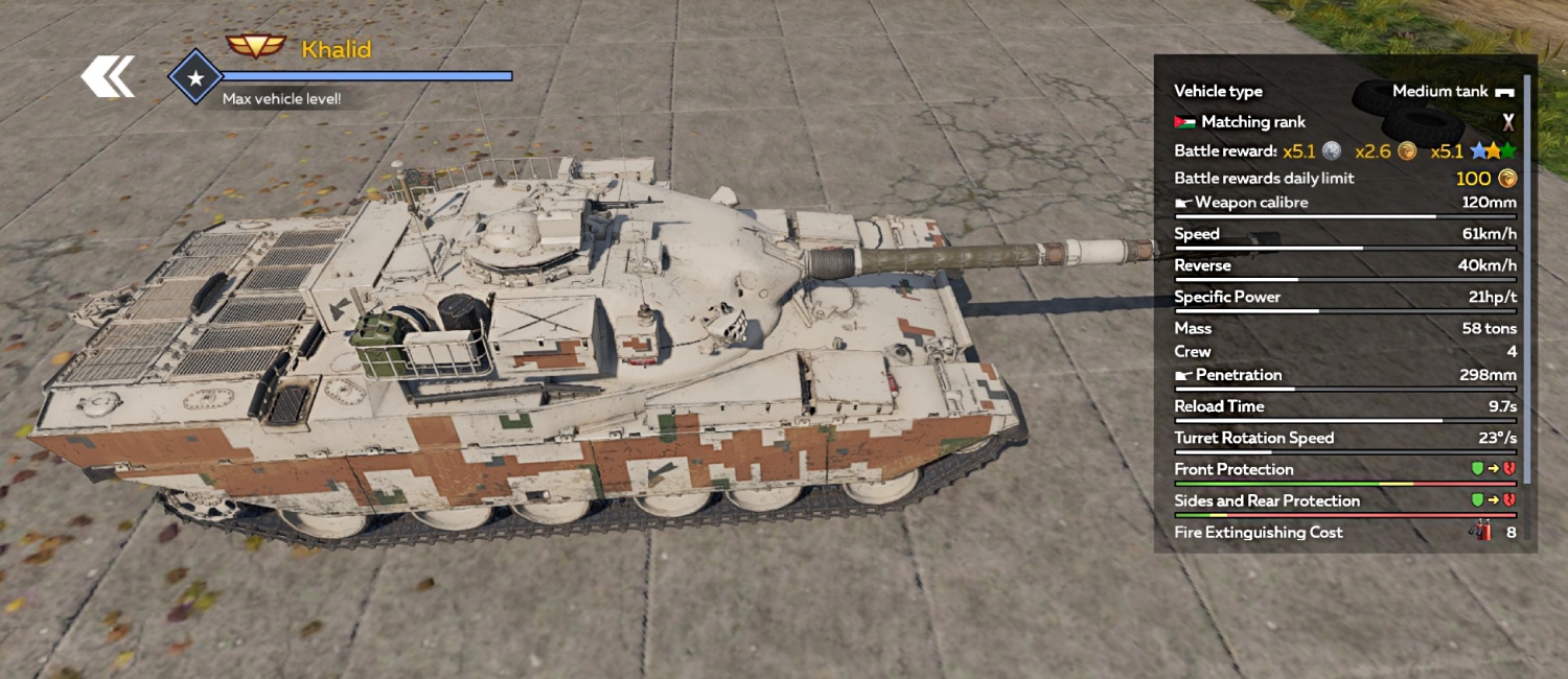 Khalid main battle tank is a modification of the famous British Chieftain tanks for the Royal Jordanian Army. In War Thunder Mobile, it will delight you with the trademark accuracy and power of the Chieftain tank gun, a strong turret head and an improved dynamics!
