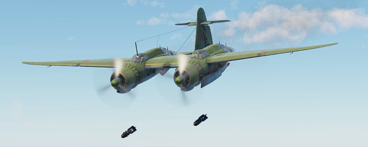 The DB-LK boasts an excellent bomb load for its rank – high-explosive and armour-piercing bombs ranging from 50 to 1000 kg in various combinations, with a total weight of up to 2000 kg! This is enough for any bombing mission, from small ground targets to attacks on enemy bases.