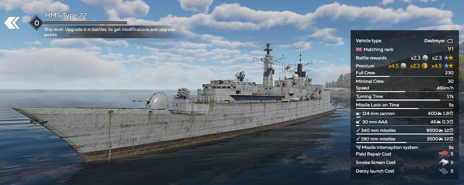 The HMS Type 22 (Rank VI) can be obtained in War Thunder Mobile (WTM) from Medium or Big Trophies in the Ship Campaign with the start of the new Season.