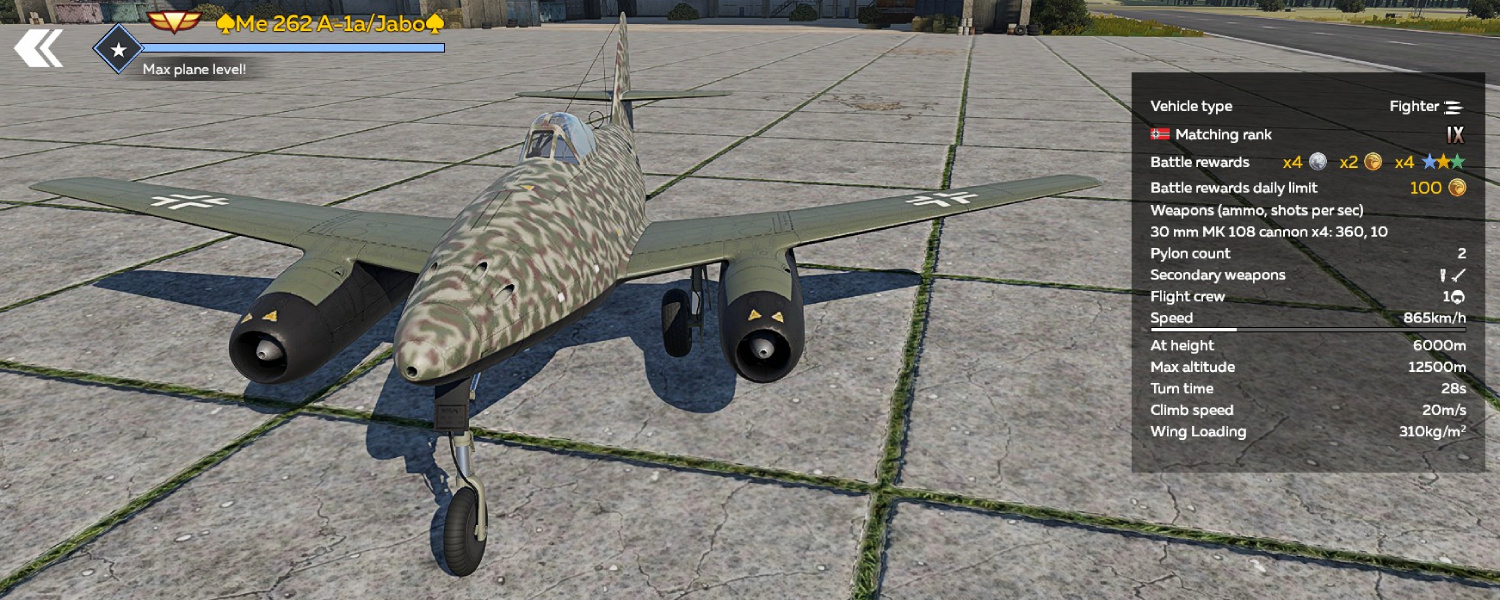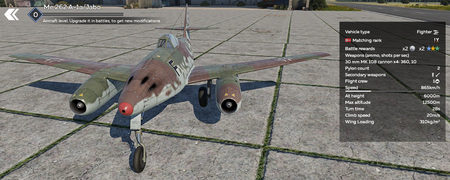 Beyond its new ground-attack capability, the “Schwalbe” remains true to its character. It is a well-balanced aircraft with a high top speed, powerful weaponry, and few major weaknesses. However, like many early jet aircraft, it has relatively low acceleration and a slower rate of fire from its nose-mounted 30 mm cannons. These limitations can make it challenging to lead fast-moving targets crossing your path.