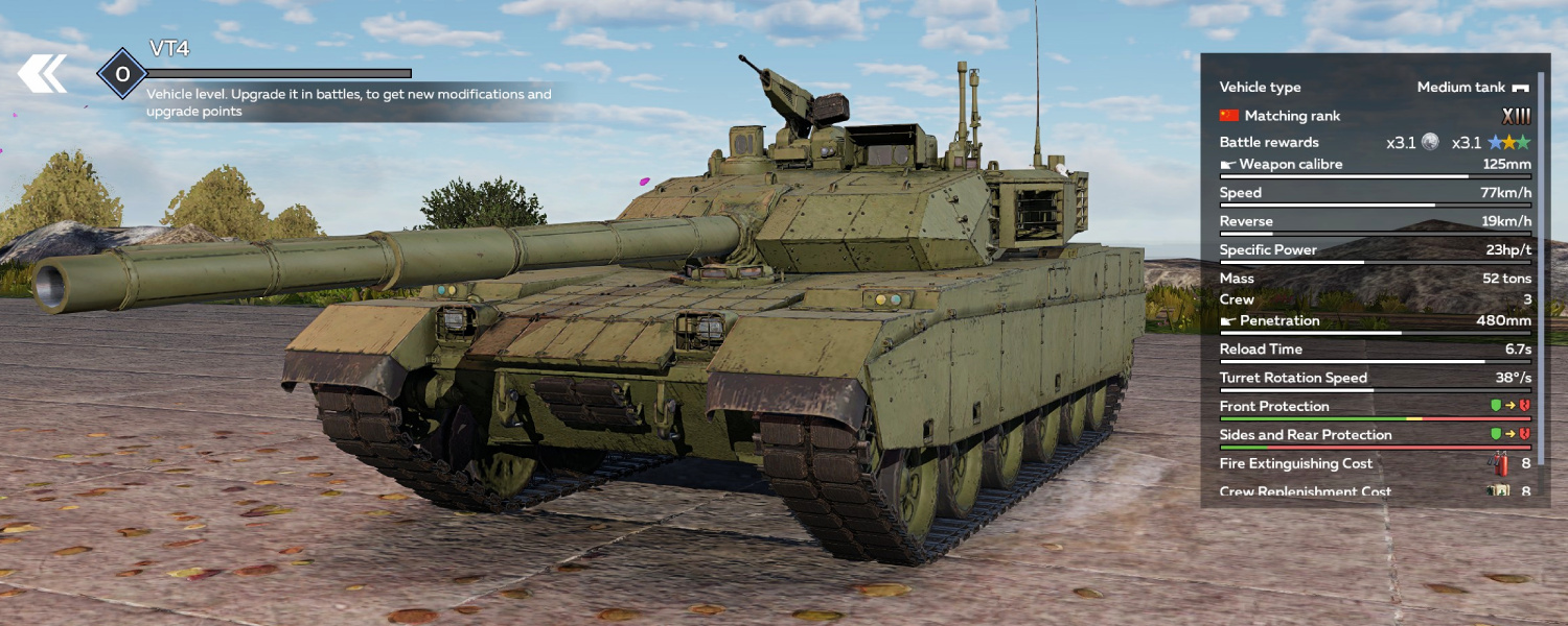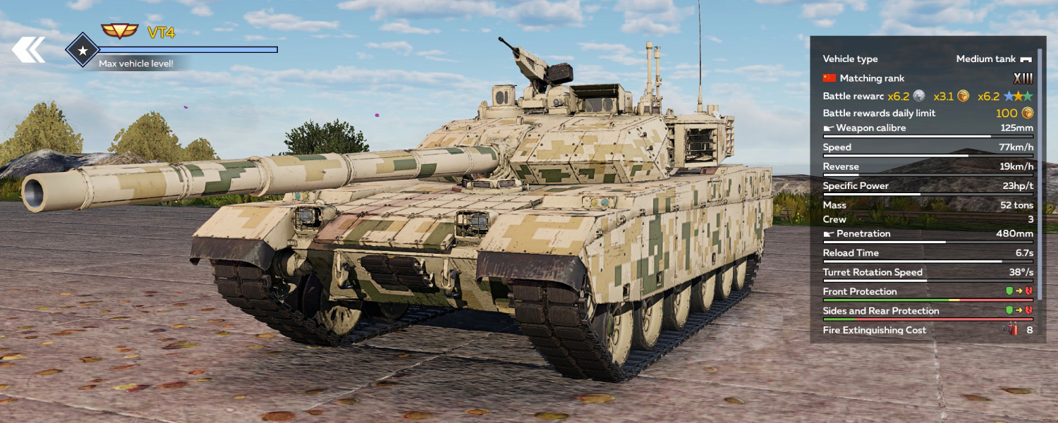 Der VT4 (Rang XIII) kann in War Thunder Mobile (WTM) durch die Mittleren und Großen Trophäen in der Panzerkampagne mit Beginn der neuen Saison erhalten werden.